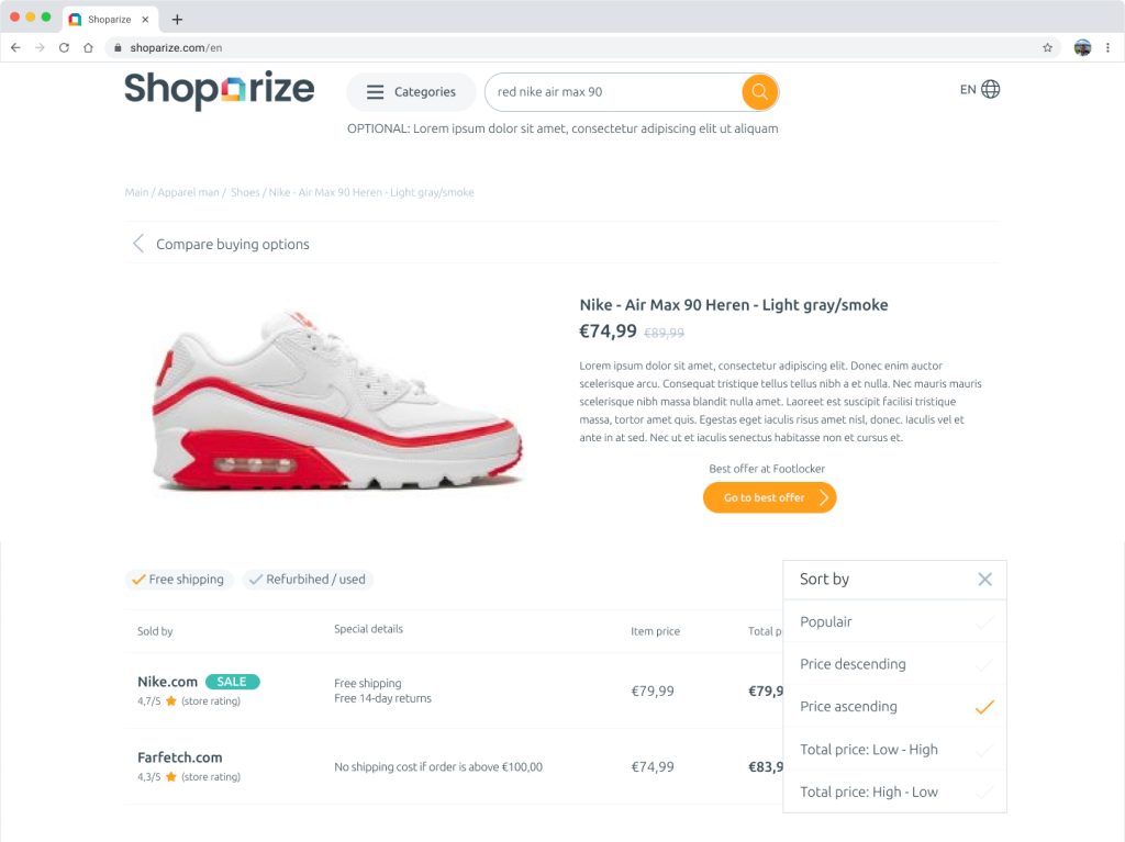 Shoparize helps users find the best place to buy a product by comparing prices across multiple retailers, including shipping costs and availability. The product detail page plays a critical role in that promise: this is where users decide whether they trust the comparison and take action.